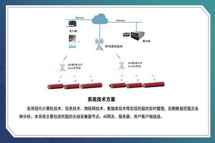 在每個托根上安裝一個傳感監(jiān)測裝置,能實時監(jiān)測一個托根的轉(zhuǎn)速、圈數(shù)等運行狀態(tài),當出現(xiàn)故障時在手機端給出報警,在PC端同步數(shù)據(jù)分析,及時通知用戶維護。